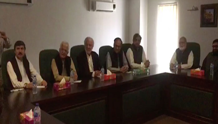 From Jamiat Ulema-e Islam (F) Akram Khan Durrani, Mir Hasil Khan Bizenjo from National Party, Usman Khan Kakar from Pakhtunkhwa Milli Awami Party, Qaumi Watan Party’s Hashim Babar, Mian Ifthikhar from Awami National Party, Shafiq Pasrori and Jamiat Ulema-e-Pakistan’s Owais Noorani attended the meeting of the Rahbar Committee.