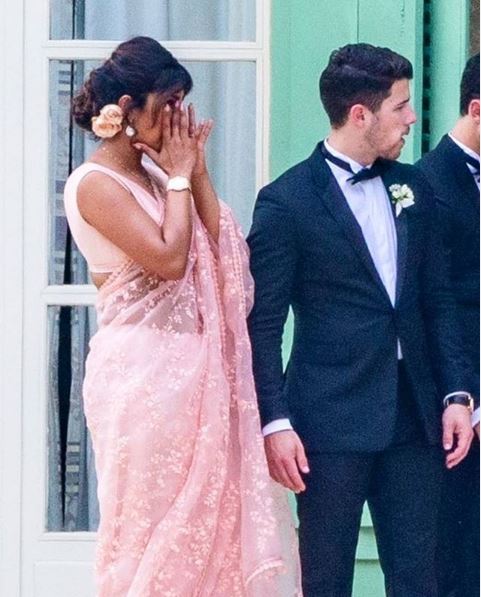 Some intimate pictures of her candid moments from the wedding have emerged online. And in one of the pictures, Priyanka was seen all emotional, wiping her tears from the hem of her sari, while her husband Nick Jonas is standing beside her.