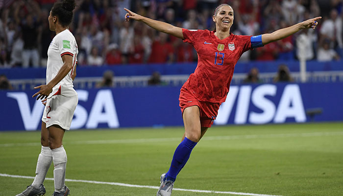 The US restored their advantage in the 31st minute through Alex Morgan’s header from Lindsey Horan’s perfectly floated ball — a goal which Morgan, on her 30th birthday, celebrated with a mocking ‘sip of tea’ gesture.